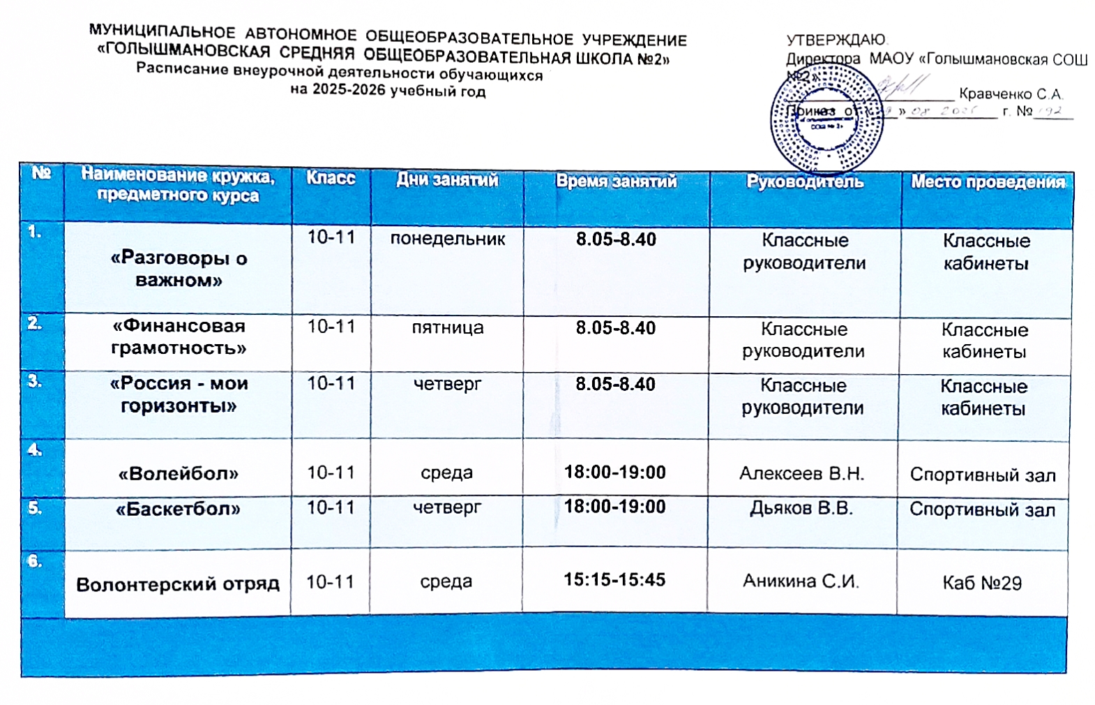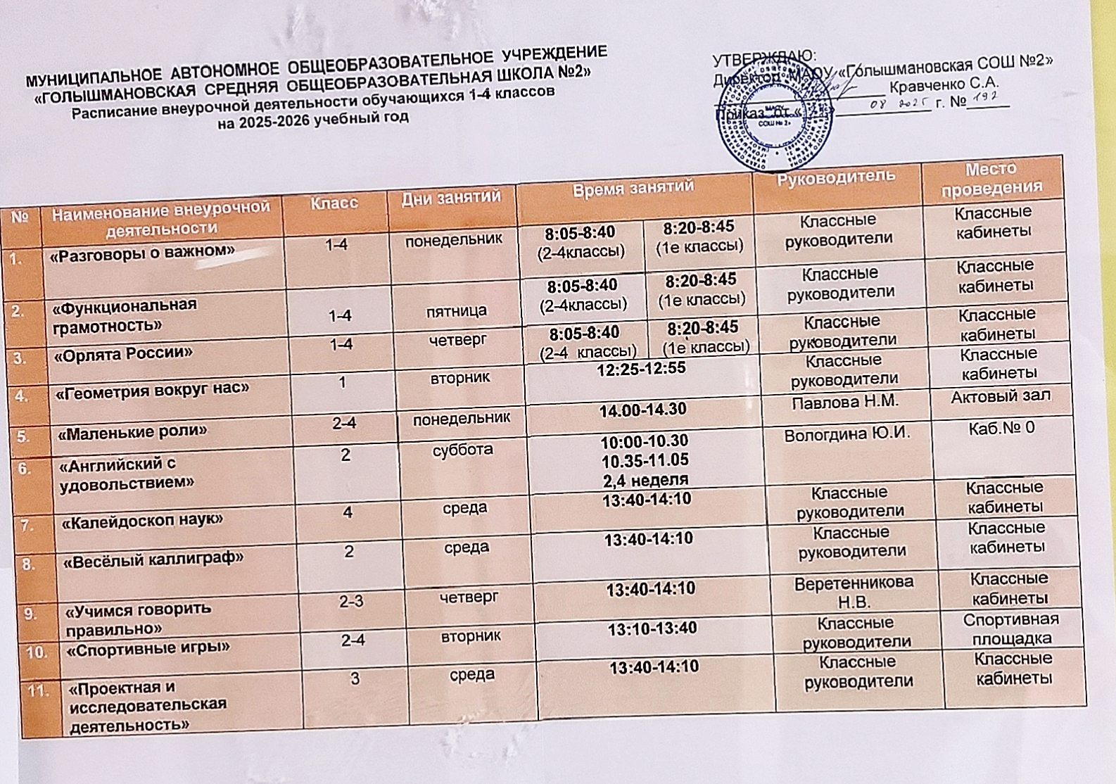 - Расписание внеурочной деятельности на 2025-2026 учебный год