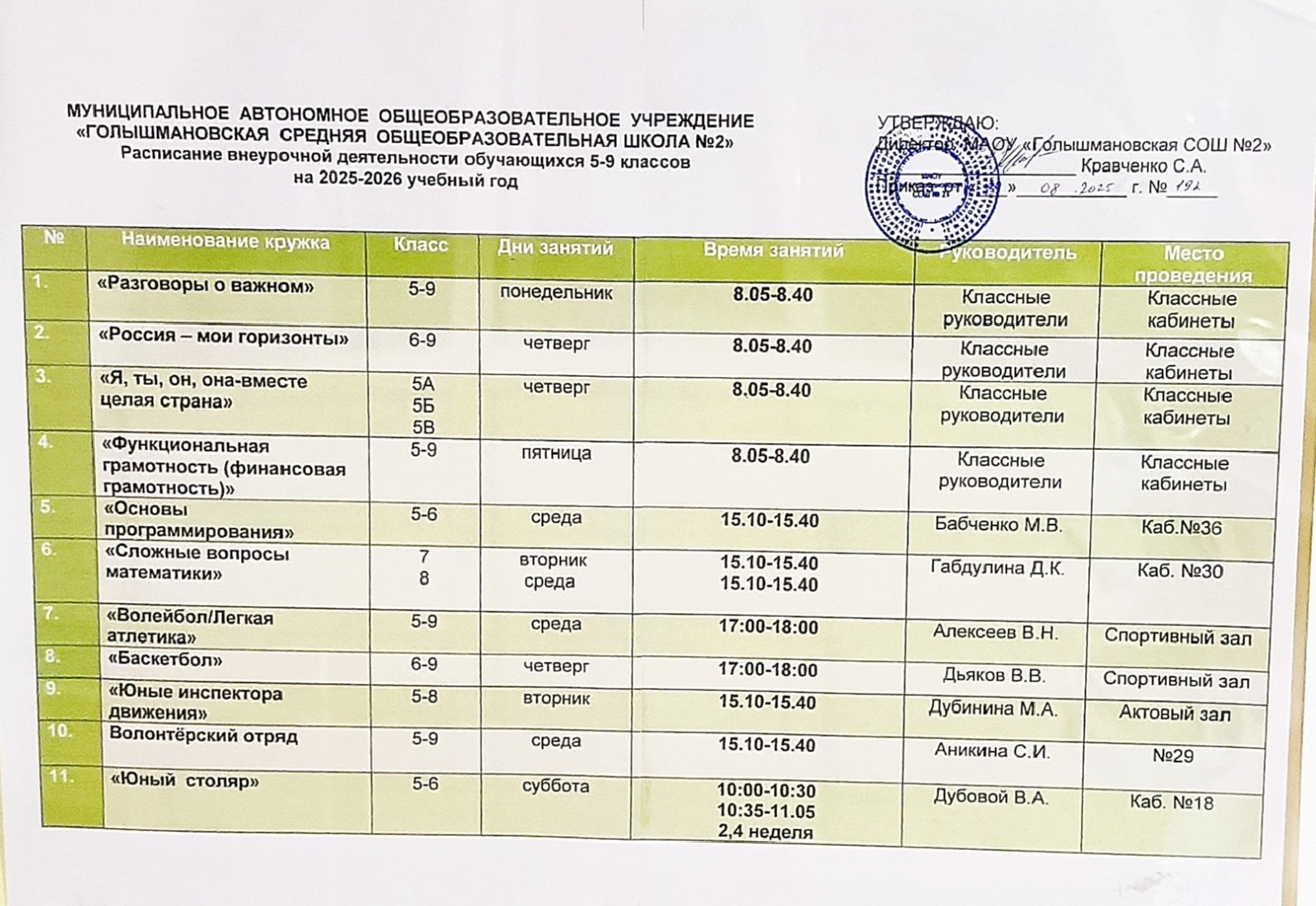 - Расписание занятий на 2025-2026 учебный год
