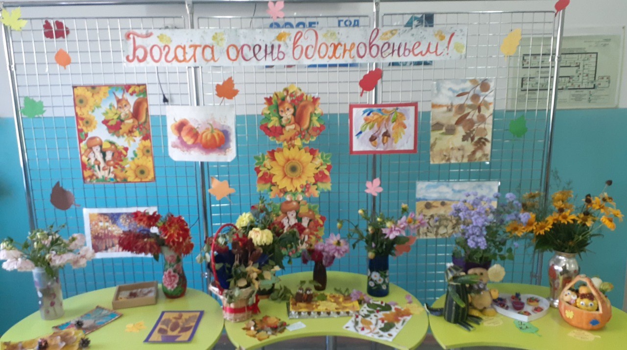 Осень в нашей школе не прошла незаметно. Была подготовлена и оформлена выставка поделок из природного материала «Богата осень вдохновеньем». Такие выставки стали традицией и проводятся ежегодно.