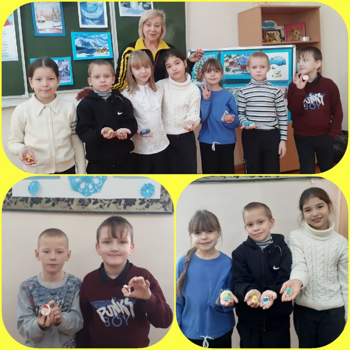 Учащиеся нашей школы участвуют в акции "Новогодний переполох", подготовили и расписали новогодние сувениры на магнитиках.
