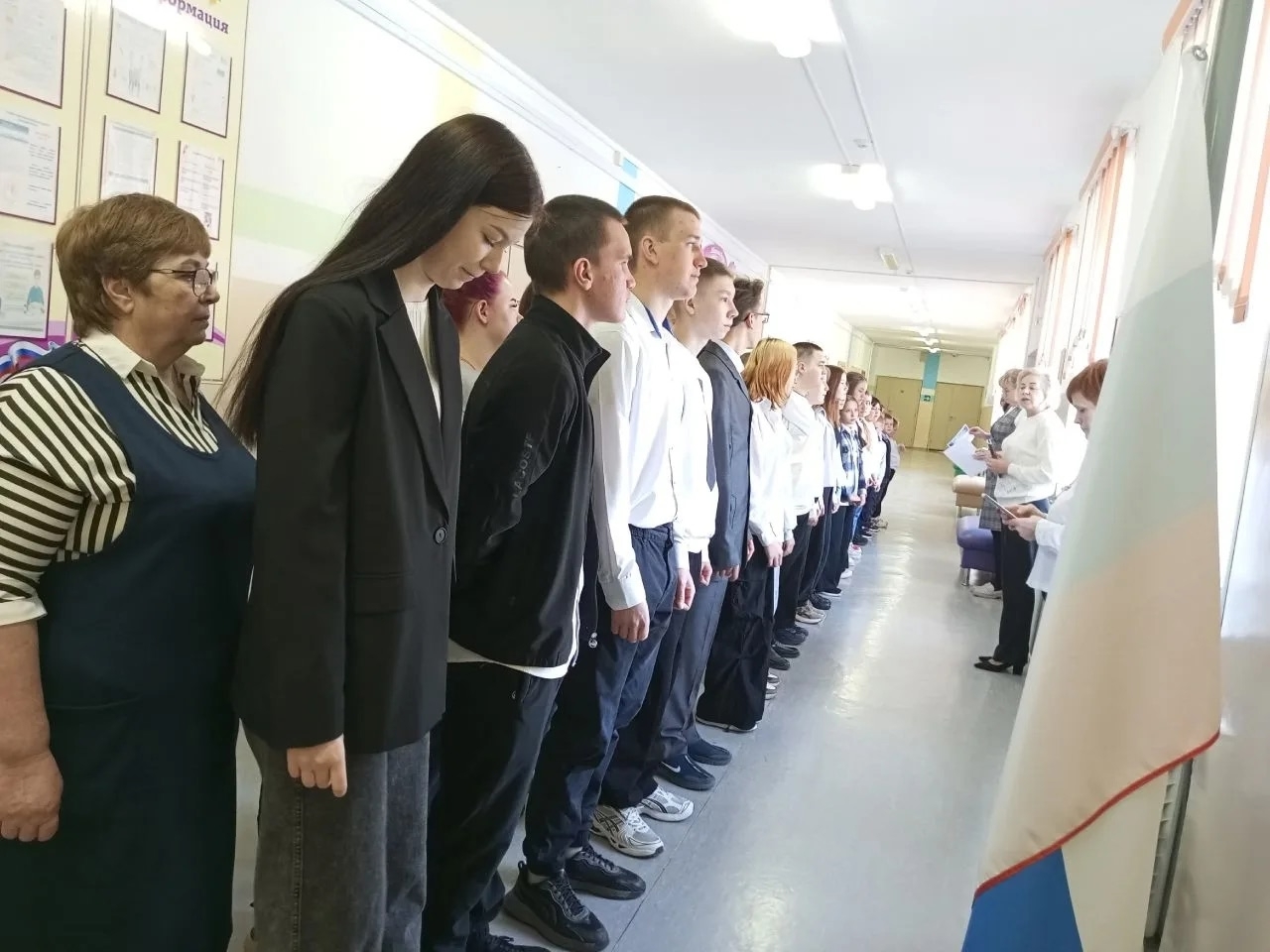 Традиционно рабочая неделя началась с поднятия государственного флага. Затем учащиеся школы разошлись на занятия по внеурочной деятельности "Разговоры о важном".