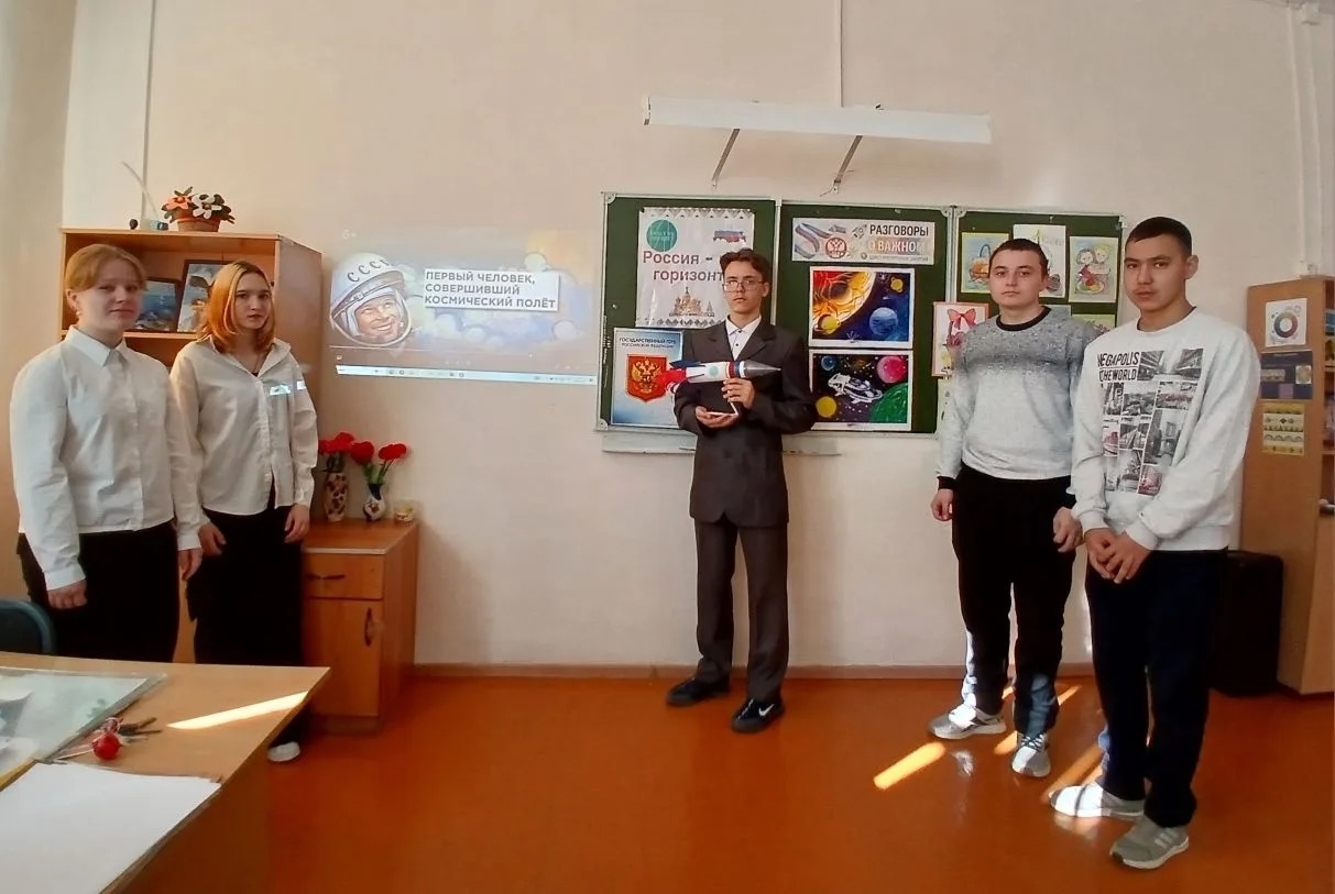 Тема встречи — «65 лет триумфа. Ко Дню космонавтики». На занятии ученики обсуждали: