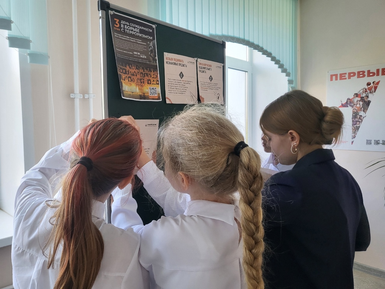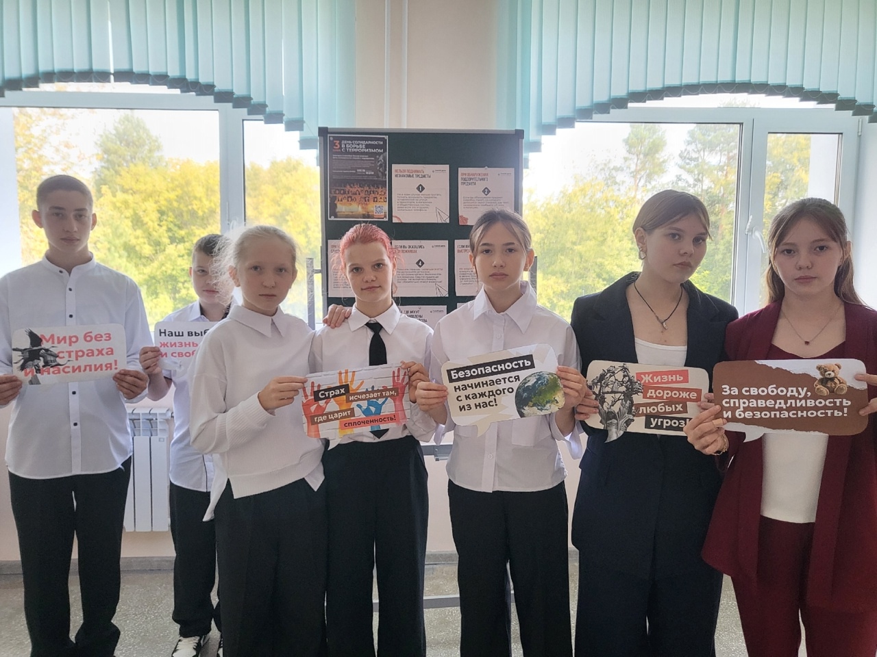 На стенде представлены материалы, напоминающие о трагических событиях, связанных с террористическими актами, и о мужестве людей, проявивших стойкость в те тяжёлые дни. Ребята подчеркнули важность сохранения памяти о жертвах терроризма и необходимости объединения усилий ради мира и безопасности.