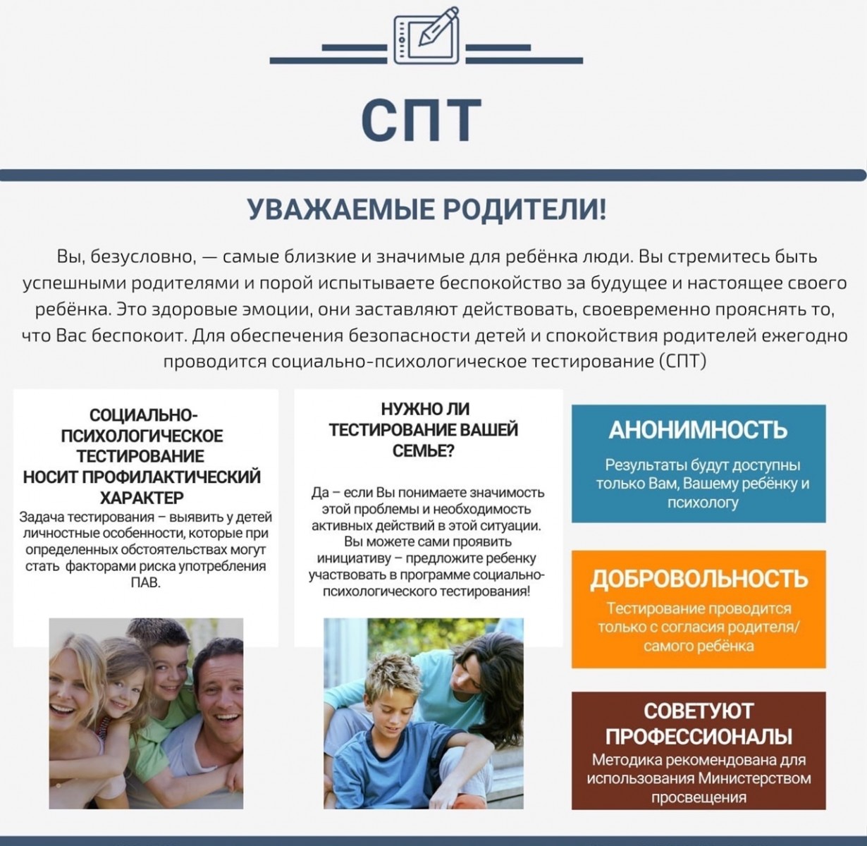В образовательных организациях Российской Федерации ежегодно проводится масштабное тестирование социально значимых характеристик личности современных детей и подростков. Тестированию подлежат обучающиеся всех без исключения общеобразовательных организаций и профессиональных образовательных организаций, а также образовательных организаций высшего образования. В нашей школе социально-психологическое тестирование пройдет