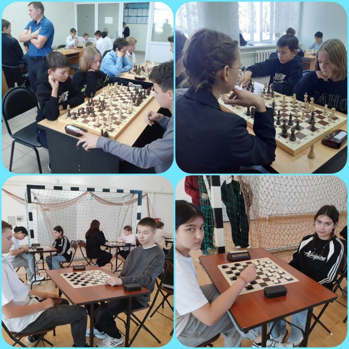 В окружных соревнования по русским шашкам и шахматам. Нашу школу по шашкам представляли Ангелина Закарян и Захар Ширшов.