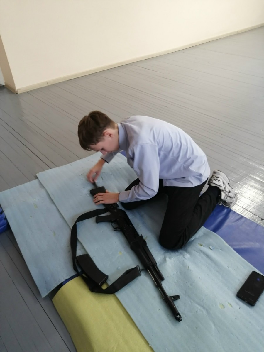 В рамках занятий юнармейского отряда «Патриот» прошло практическое занятие по пожарной подготовке и разборке автомата.