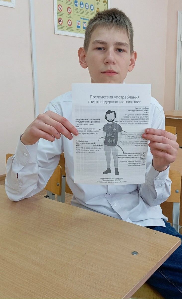 В настоящее время серьезной проблемой нашей страны является алкоголизм. Даже дети и подростки подвержены этому заболеванию. С целью профилактики данной проблемы в рамках проведения муниципального месячника профилактики алкоголизма (мероприятие реализуется в рамках проекта «Марафон здоровья») с учащимися были проведены классные часы с просмотром видеороликов «История одного обмана», «Незримый враг». Проведены профилактические беседы по подростковому пивному алкоголизму. Вручены памятки, буклеты.