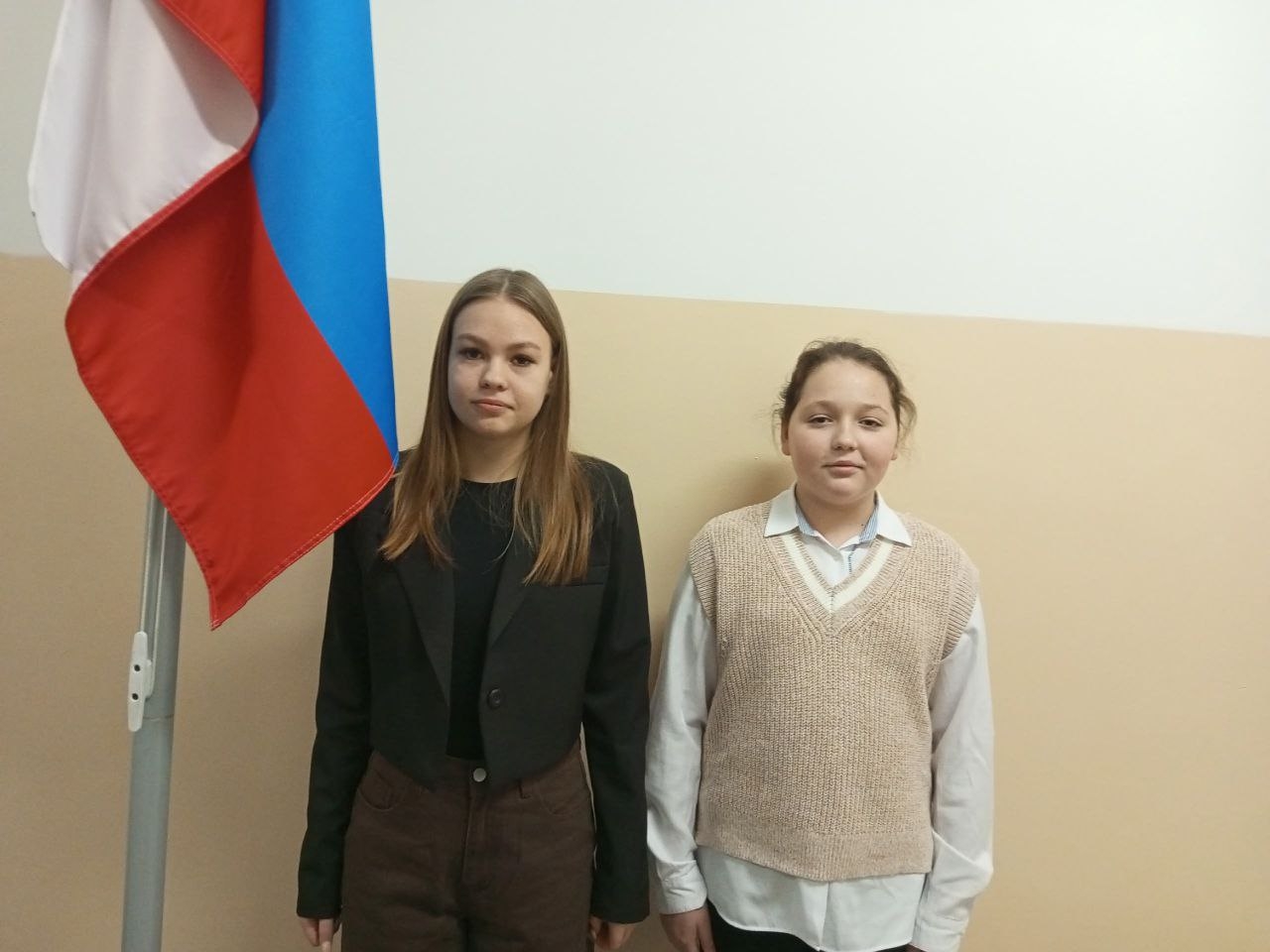 Утро понедельника 19 января 2026 года в школе традиционно началось с торжественной линейки, церемонии вноса флага и исполнения гимна Российской Федерации. Право поднять флаг РФ предоставилось участницам отборочного тура конкурса "Ученик года" Наталье Голубевой и Елизавете Нефагиной.