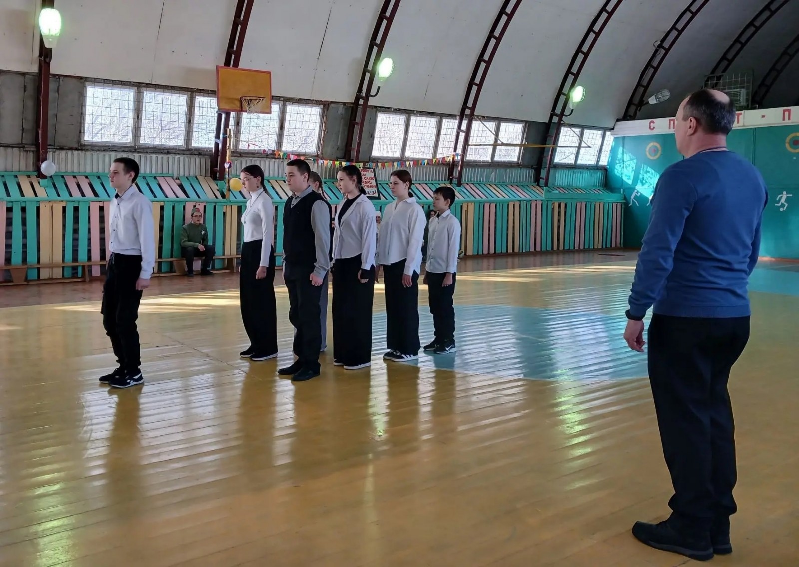 По традиции в предверии Дня Защитника Отечества в нашей школе прошел смотр строя и песни. Для судейства были приглашены глава администрации сельского поселения Василий Юрьевич Васильев и Валерий Григорьевич Черемных.