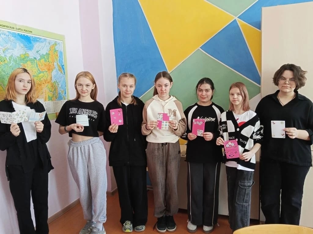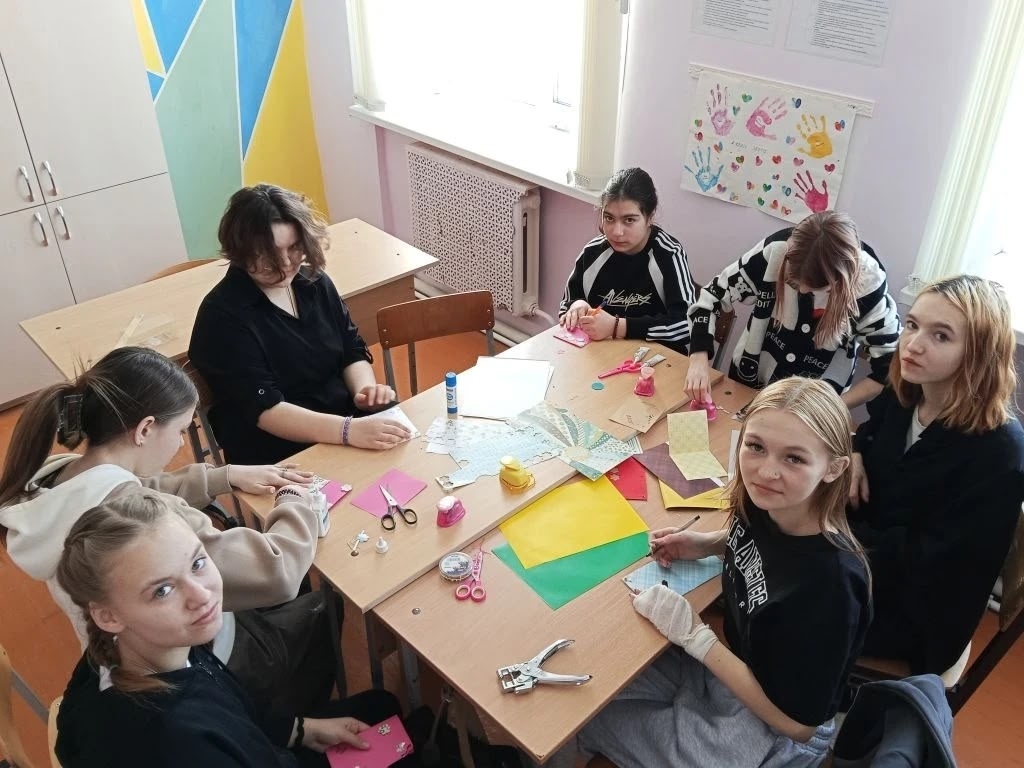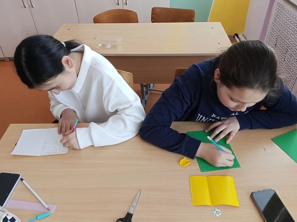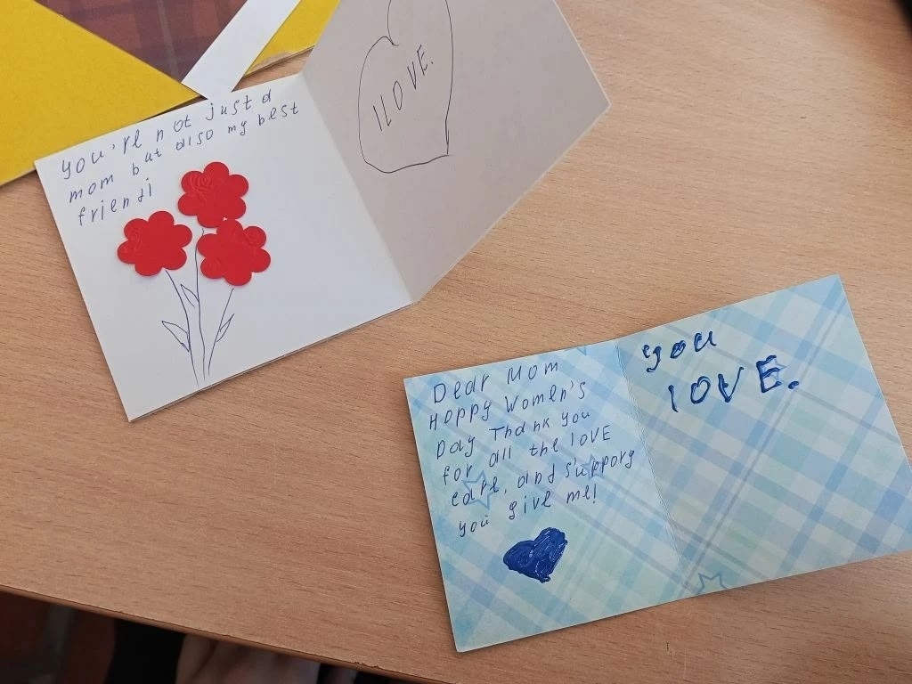 Накануне Международного женского дня на уроке английского языка ученики школы совместили приятное с полезным: смастерили яркие весенние открытки для своих мам и бабушек