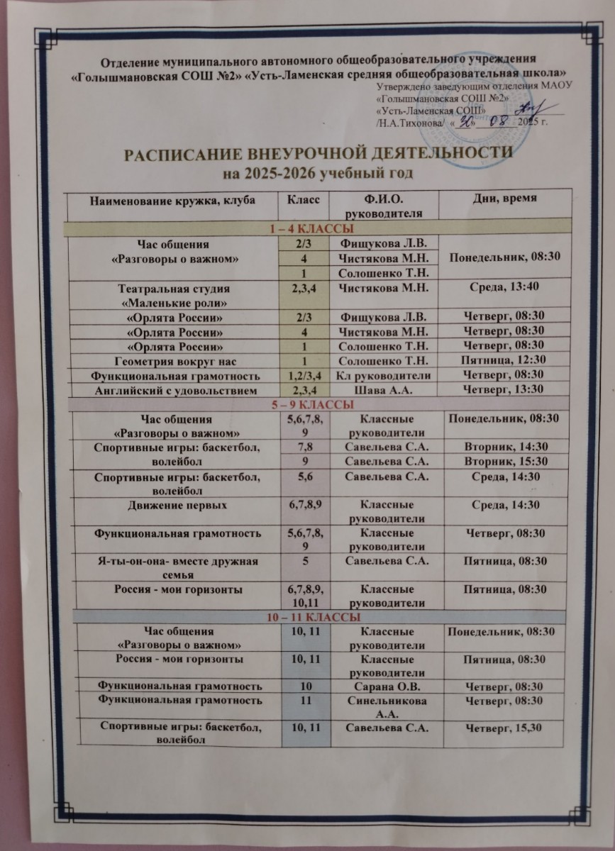 - Расписание внеурочной деятельности на 2025 - 2026 уч.год