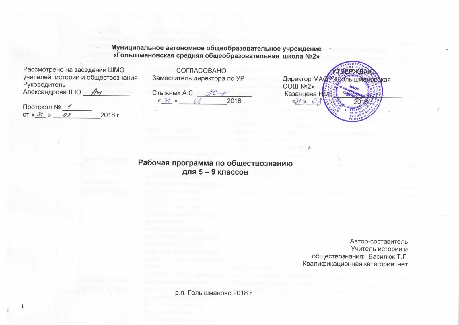 4.Положением о разработке и утверждении рабочих программ учебных предметов, курсов и дисциплин в МАОУ «Голышмановская СОШ №2», утверждённым приказом №91 от 22. 08.2016 г